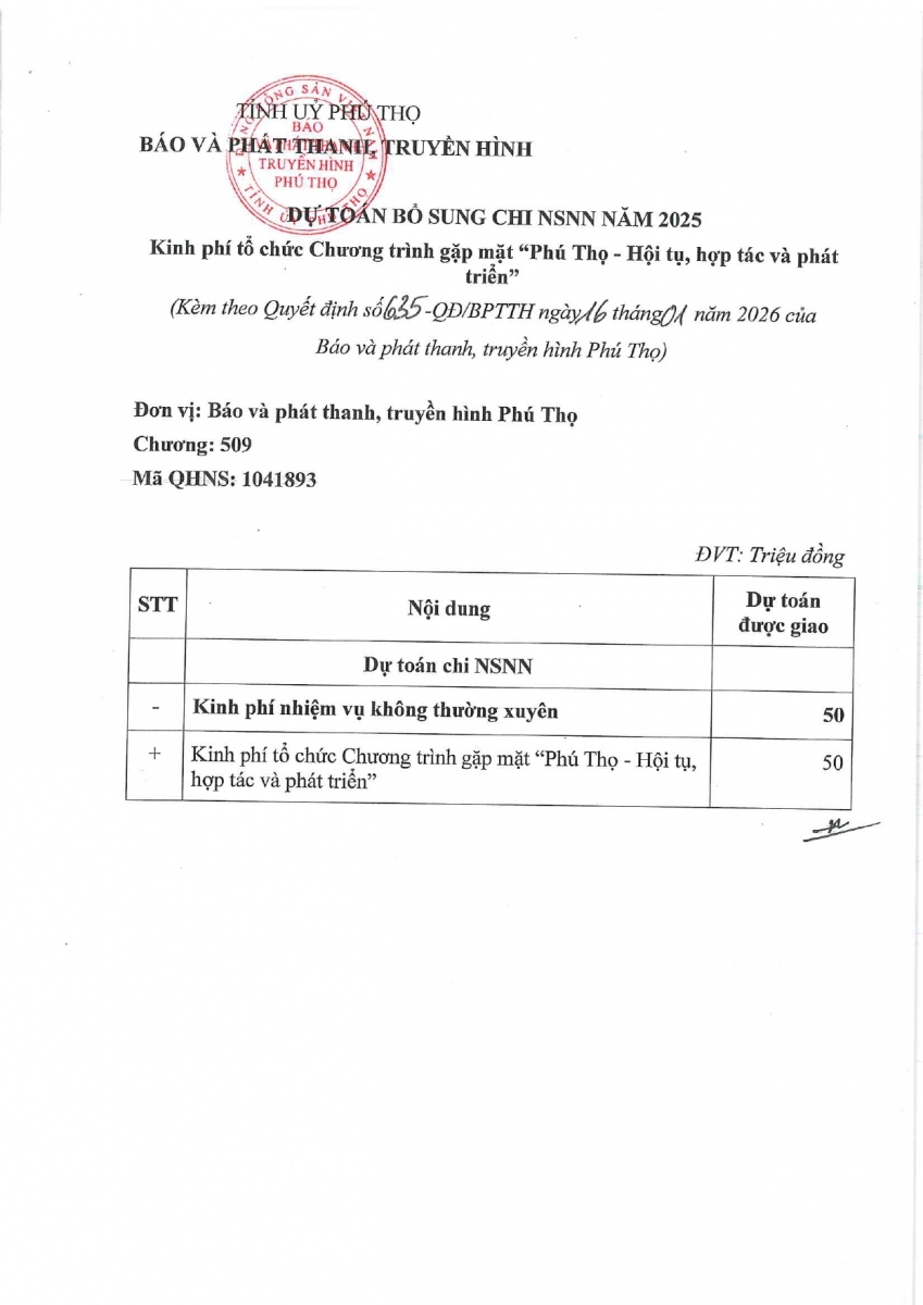 Dự toán bổ sung chi ngân sách năm 2025